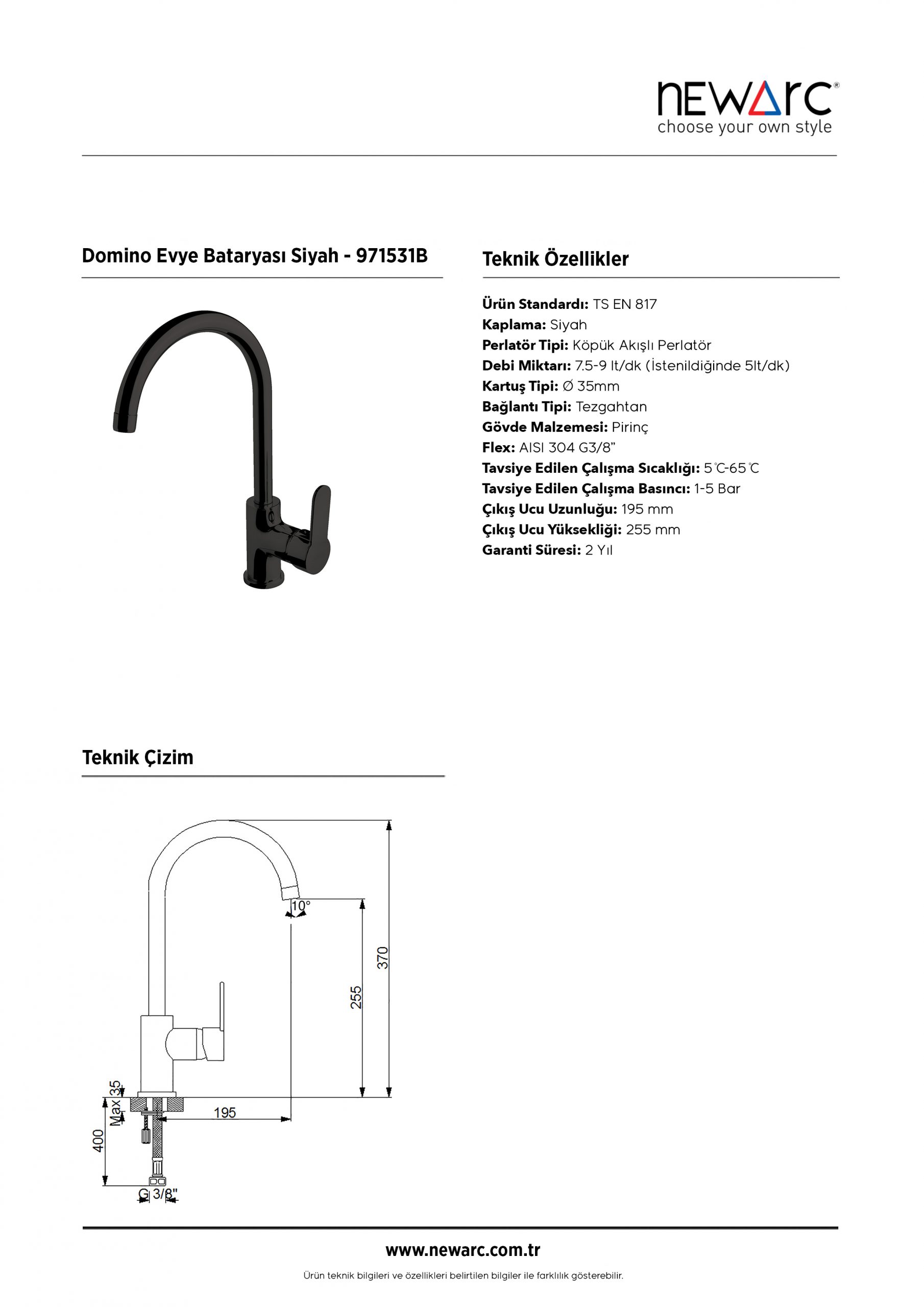 – Çıkış ucu yüksekliği 255 mm’dir.