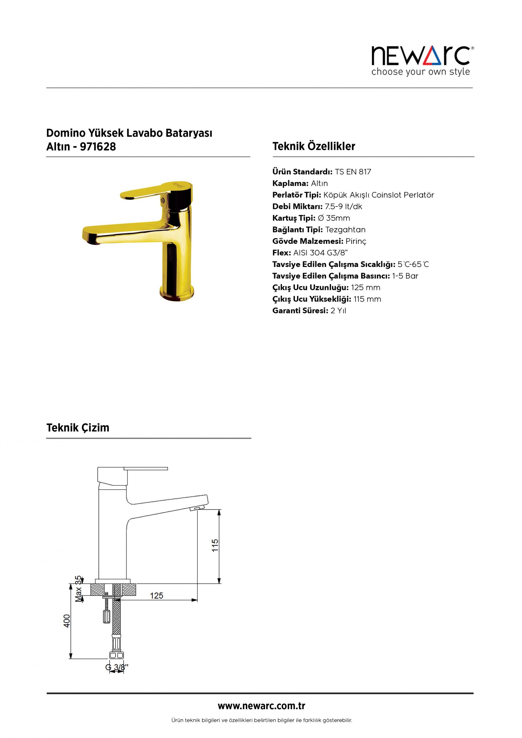 Domino Yüksek Lavabo Bataryası Altın 971628